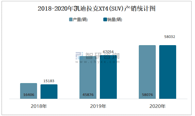 2018-2020年凱迪拉克XT4(SUV)產銷統計圖