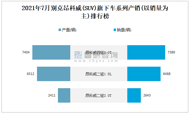 2021年7月別克昂科威(SUV)旗下車系列產(chǎn)銷(以銷量為主)排行榜