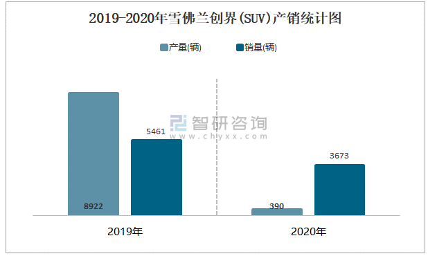 2019-2020年雪佛蘭創界(SUV)產銷統計圖