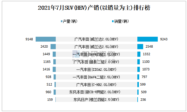 2021年7月SUV(HEV)產銷(以銷量為主)排行榜