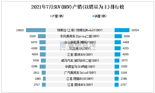 2021年7月SUV(BEV)產銷(以銷量為主)排行榜