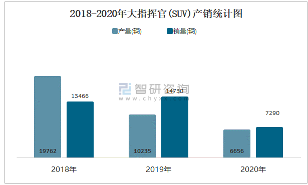 2018-2020年大指揮官(SUV)產(chǎn)銷統(tǒng)計圖