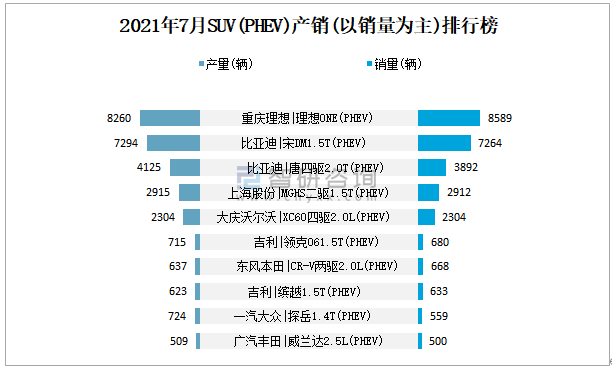 2021年7月SUV(PHEV)產(chǎn)銷(以銷量為主)排行榜