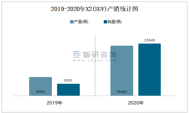 2019-2020年X2(SUV)產銷統計圖