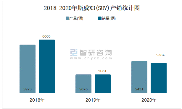2018-2020年斯威X3(SUV)產(chǎn)銷統(tǒng)計圖