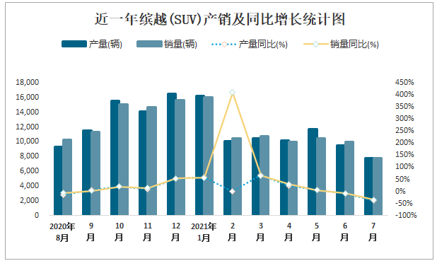 根據中國汽車工業協會數據統計可知:2021年7月SUV累計產量為707123輛,累計銷量為724328輛,7月產銷率為102.43%,7月清倉庫存17205輛。