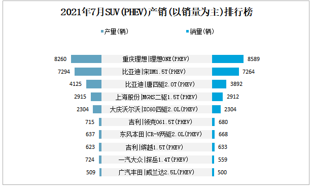 2021年7月SUV(PHEV)產銷(以銷量為主)排行榜