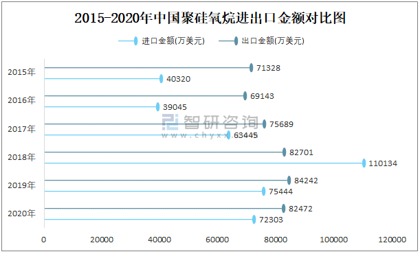 2015-2020年中國聚硅氧烷進(jìn)出口金額對比統(tǒng)計圖