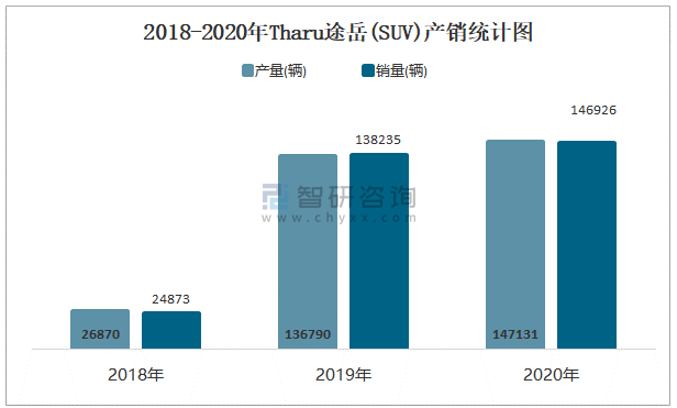 2018-2020年THARU途岳(SUV)產(chǎn)銷統(tǒng)計圖