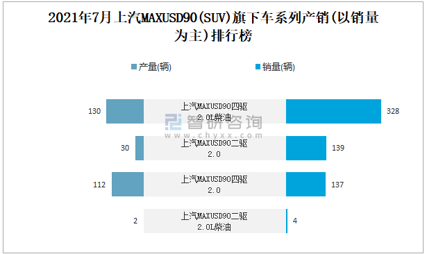 2021年7月上汽MAXUSD90(SUV)旗下車系列產銷(以銷量為主)排行榜