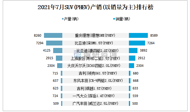 2021年7月SUV(PHEV)產銷(以銷量為主)排行榜