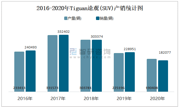 2016-2020年TIGUAN途觀(SUV)產銷統計圖