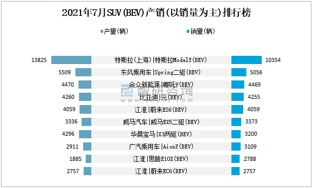 2021年7月SUV(BEV)產銷(以銷量為主)排行榜