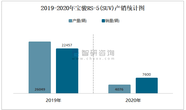 2019-2020年寶駿RS-5(SUV)產銷統計圖