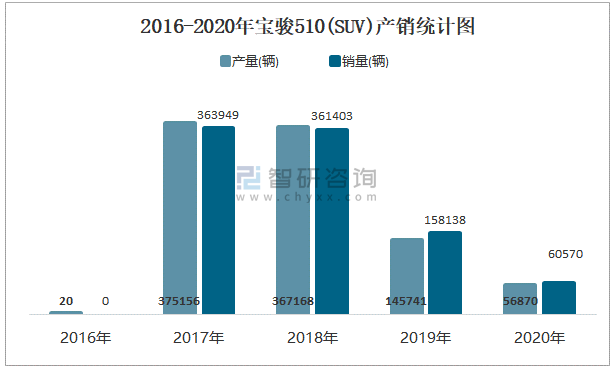 2016-2020年寶駿510(SUV)產銷統計圖