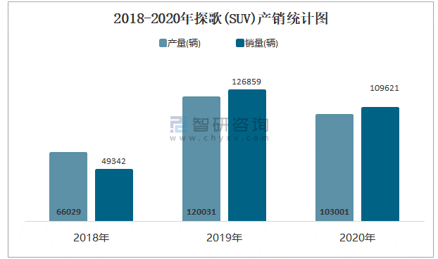 2018-2020年探歌(SUV)產銷統計圖