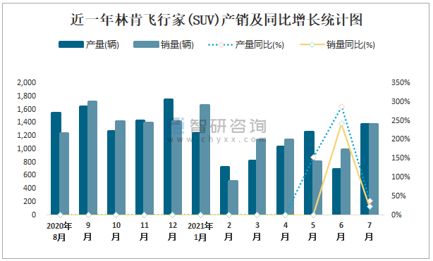 根據中國汽車工業協會數據可知:2021年7月林肯飛行家(SUV)產量為1380輛,同比增長37.5%,銷量為1372輛,同比增長22.6%,當月產銷率為99.42%;2021年1-7月林肯飛行家(SUV)累計產量為7154輛,同比增長325.8%,累計銷量為7632輛,同比增長441.7%,累計產銷率為106.68%;且2020年林肯飛行家(SUV)總產量大于總銷量,積壓了庫存722輛。