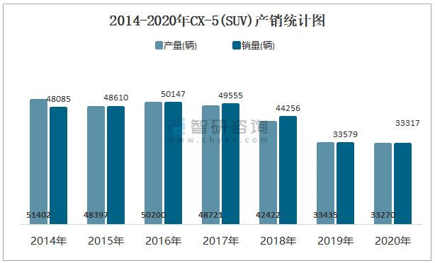 2014-2020年CX-5(SUV)產銷統計圖