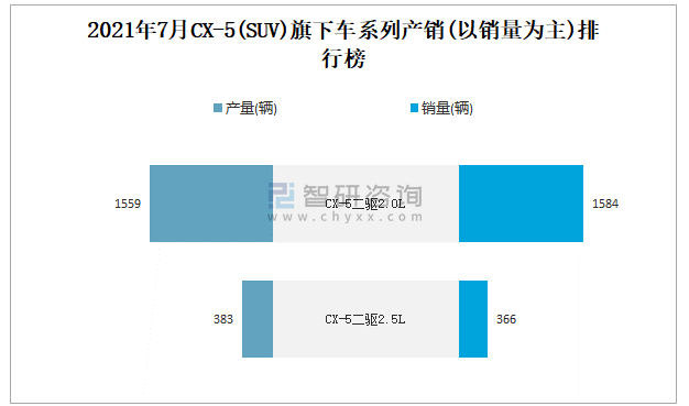 2021年7月CX-5(SUV)旗下車系列產銷(以銷量為主)排行榜