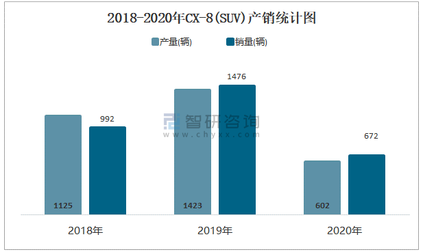 2018-2020年CX-8(SUV)產銷統計圖