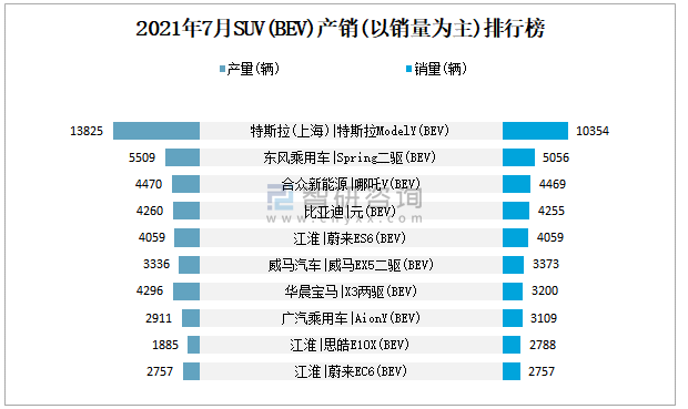 2021年7月SUV(BEV)產銷(以銷量為主)排行榜