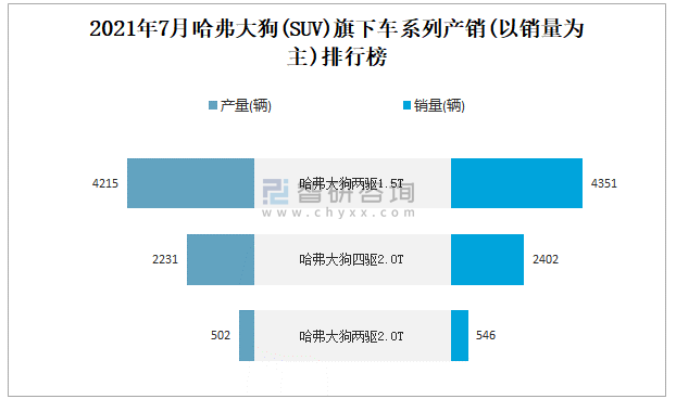 2021年7月哈弗大狗(SUV)旗下車系列產(chǎn)銷(以銷量為主)排行榜