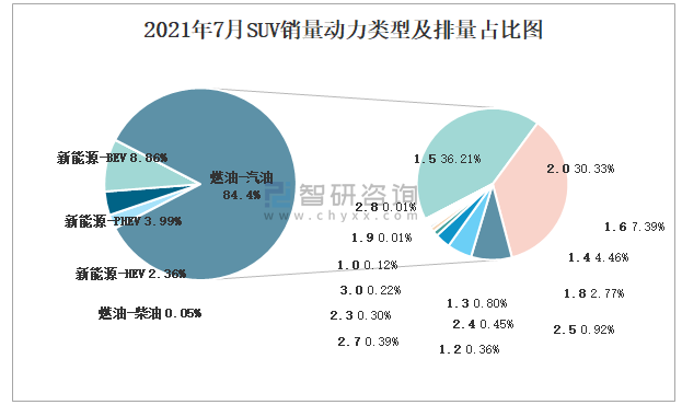 2021年7月SUV銷量動力類型及排量占比圖