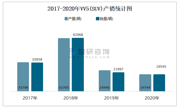 2017-2020年VV5(SUV)產(chǎn)銷統(tǒng)計圖