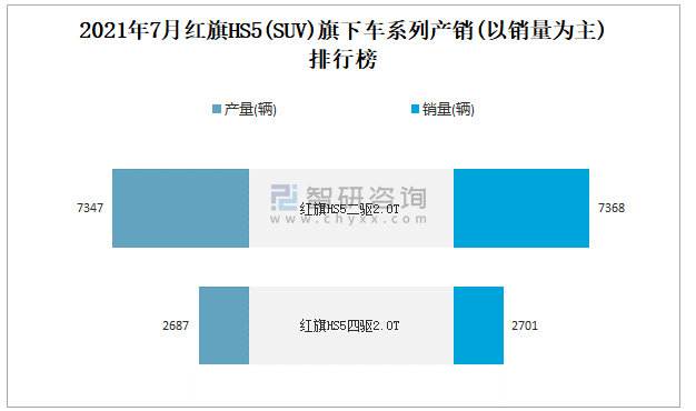 2021年7月紅旗HS5(SUV)旗下車系列產銷(以銷量為主)排行榜