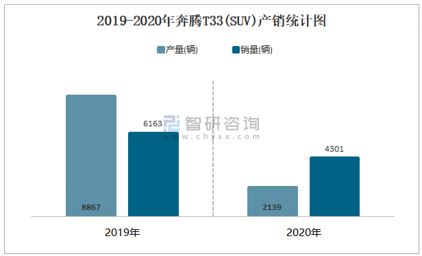 2019-2020年奔騰T33(SUV)產銷統計圖