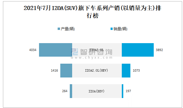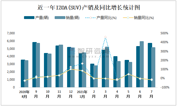 2021年7月IZOA(SUV)產銷量分別為5714輛和5162輛 當月產銷率為90.34%