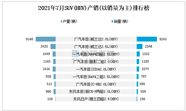 2021年7月SUV(HEV)產銷(以銷量為主)排行榜