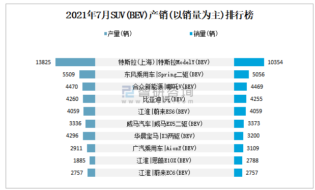 2021年7月SUV(BEV)產銷(以銷量為主)排行榜