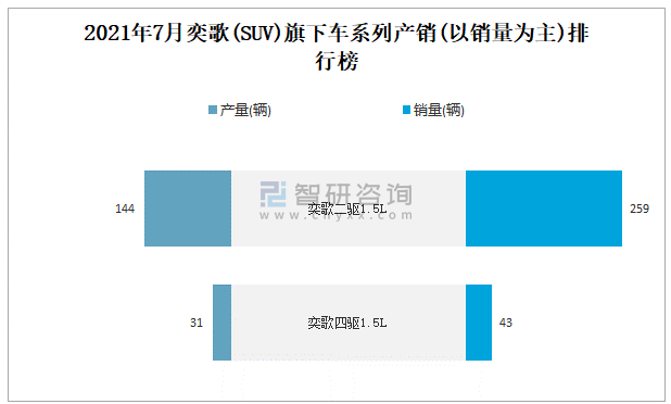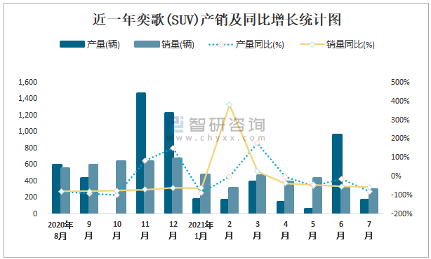 2021年7月奕歌(SUV)產銷量分別為175輛和302輛 當月產銷率為172.57%