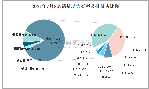 2021年7月SUV銷量動力類型及排量占比圖