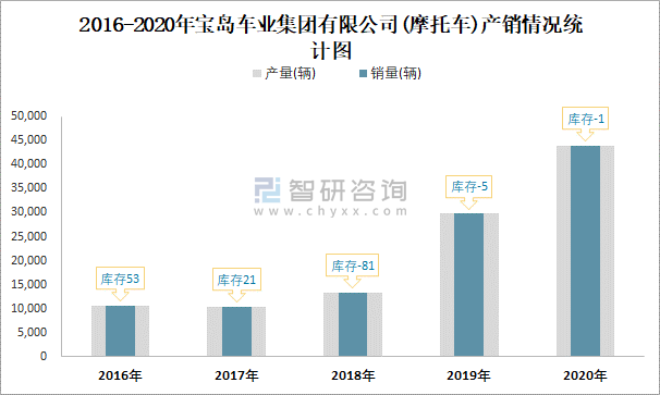 2016-2020年寶島車業(yè)集團有限公司產(chǎn)銷情況統(tǒng)計圖
