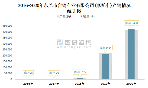 2016-2020年?yáng)|莞市臺(tái)鈴車業(yè)有限公司產(chǎn)銷情況統(tǒng)計(jì)圖