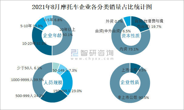 2021年8月摩托車企業各分類銷量占比統計圖