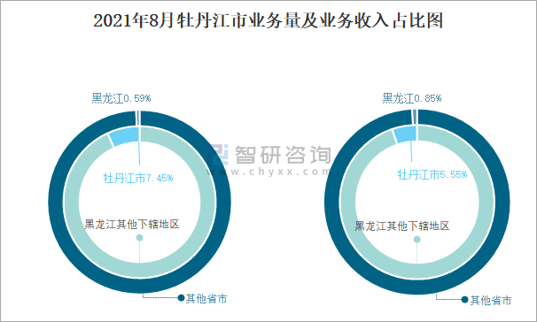 2021年8月牡丹江市業務量及業務收入占比圖