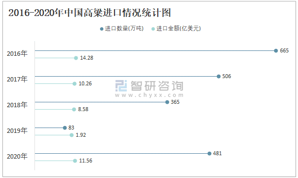 根據中國海關數據顯示:2021年8月中國高粱進口數量為81萬噸,同比增長27%,進口金額為2.57億美元,同比增長67.8%,2021年1-8月中國高粱進口數量為671萬噸,進口金額為21.1億美元。