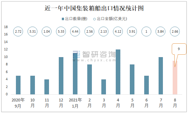 近一年中國集裝箱出口情況統(tǒng)計圖