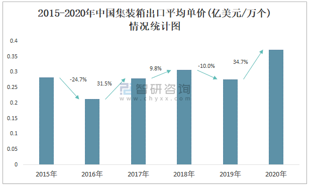 2015-2020年中國集裝箱出口平均單價(億美元/萬個)情況統(tǒng)計圖