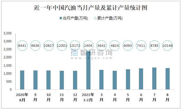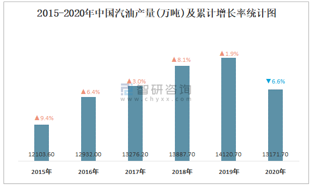 根據國家統計局數據顯示:2021年8月中國汽油產量為1345萬噸,同比增長13%;2021年1-8月中國汽油累計產量為10145.7萬噸,累計增長20.2%;2015-2020年中國汽車產量2017年起逐年遞減。