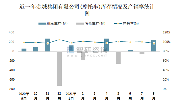 近一年金城集團有限公司庫存情況及產銷率統計圖
