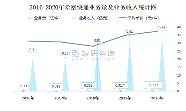 2016-2020年哈密快遞業(yè)務(wù)量及業(yè)務(wù)收入統(tǒng)計(jì)圖