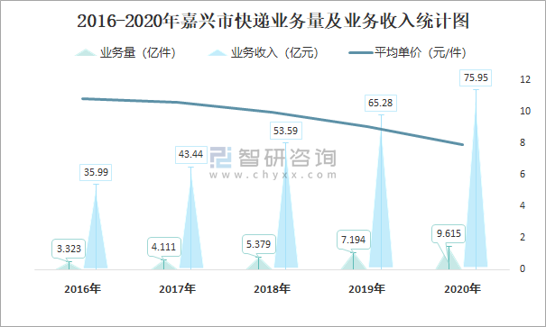 2016-2020年嘉興市快遞業(yè)務(wù)量及業(yè)務(wù)收入統(tǒng)計圖