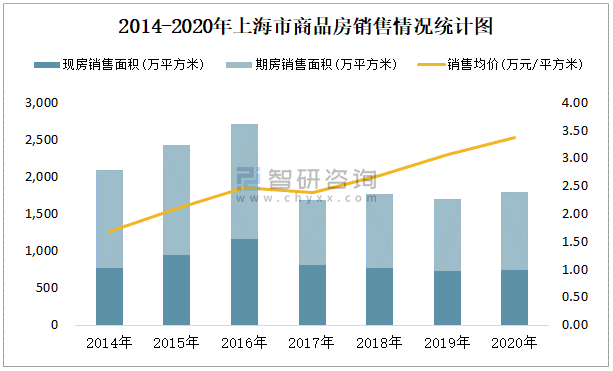 根據國家統計局數據統計可知:2021年9月上海市商品房銷售面積為197.71萬平方米(其中銷售現房87.08萬平方米,期房110.63萬平方米),銷售額為518.8億元,銷售均價約為2.62萬元/平方米;2021年1-9月上海市商品房累計銷售面積為1291.01萬平方米,銷售面積累計同比增長14.1%,累計銷售額為4866.31億元,銷售額累計同比增長17.2%;2014-2020年上海市商品房總銷售面積2016年達到最高值,此后有所下滑,其中期房銷售面積大大高于現房銷售面積,銷售均價2020年達到最高值,此后有所下滑。