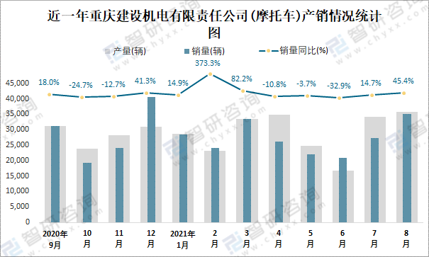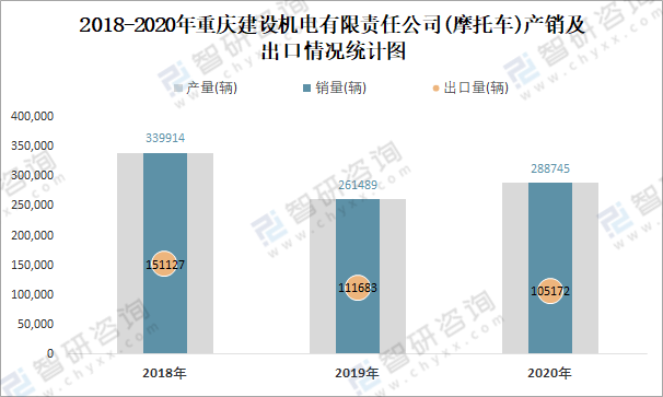 根據(jù)中國汽車工業(yè)(摩托車)產(chǎn)銷快訊數(shù)據(jù)顯示:2021年8月重慶建設機電有限責任公司(摩托車)產(chǎn)量為35695輛,同比增長49.1%,銷量為35116輛,同比增長45.38%;2021年1-8月重慶建設機電有限責任公司(摩托車)累計產(chǎn)量為231540輛,同比增長32.07%,累計銷量為217177輛,同比增長25.05%;2018-2020年重慶建設機電有限責任公司(摩托車)產(chǎn)銷量2019年跌至最低值,次年有所回升,且近3年總產(chǎn)量大于總銷量,積壓了庫存556輛,出口量偏少,銷量以內(nèi)銷為主。