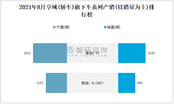 2021年8月享域(轎車(chē))旗下車(chē)系列產(chǎn)銷(xiāo)(以銷(xiāo)量為主)排行榜