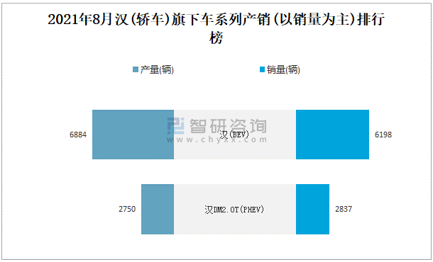2021年8月漢(轎車)旗下車系列產銷(以銷量為主)排行榜